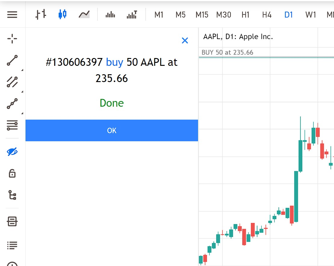 In the screenshot above, we’ve called up the AAPL price chart in preparation to make a trade.