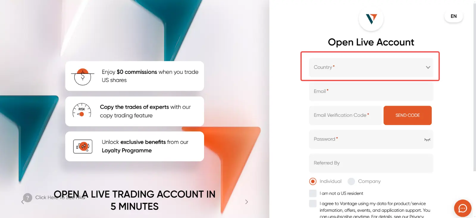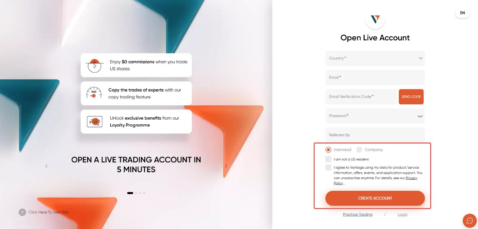 By providing your email and proceeding to create an account on this website, you acknowledge that you will be opening an account with Vantage Global Limited, regulated by the Vanuatu Financial Services Commission (VFSC), and not the UK Financial Conduct Authority (FCA).