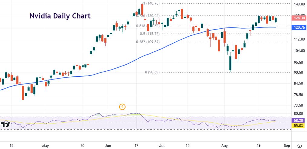 US Stocks: US markets finished mixed again, but with the Dow this time underperforming. The benchmark S&P 500 settled up 0.16% at 5,626. The tech-dominated Nasdaq 100 finished higher by 0.33% at 19,582. The Dow Jones closed up at 41,250. Tech and financials led the gains while energy and utilities were the laggards. The Microsoft CEO sold 14,000 shares at an average price of $417 last Friday. Hindenburg Research disclosed a new short position in server maker Super Micro. Naturally, all eyes are on Nvidia’s earnings released after the US closing bell on Wednesday.