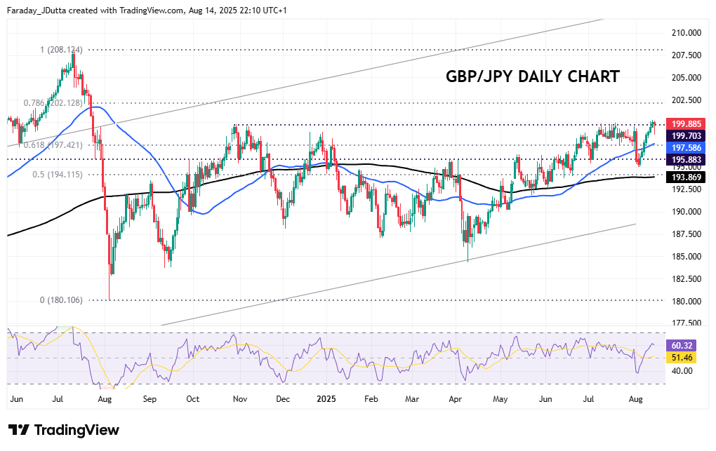 Since the Liberation Day spike sell-off down to 184.36 and the bottom of a long-term bull channel from the 2020 lows, this popular pair has moved higher and back to the middle of the ascending channel. Prices poked above the October 2024 top at 199.70 but then fell sharply at the start of this month. Support was seen at a long-term peak from 2015 at 195.88 and we’re now back trying to push decisively above the resistance zone around 200. Notably, price action yesterday saw a sharp rejecitons of lower prices below 199. The next retracement Fib level (78.6%) of the July to August 2024 move down and potential intial resistance to more upside is at 202.12. The key pivot poit and resistance/support is 199.70.