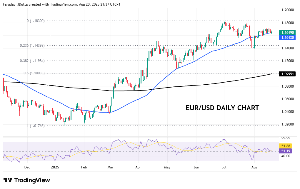 EUR also traded around its 50-day SMA at 1.1643 as markets await PMI data and Powell’s speech. ECB Lagarde mainly talked about trade policy and how the ECB will include the US-EU trade deal in its September staff projections.