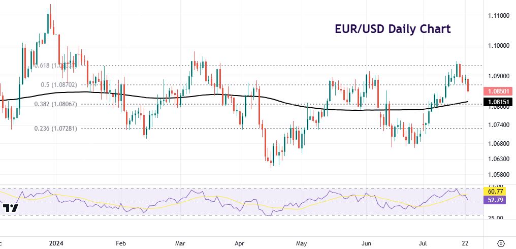 Eurozone PMI data could see mild softness as the composite figure nears the crucial 50 expansion/contraction marker. But both manufacturing and services are expected to tick very marginally higher. Attention will be on whether any political uncertainty has fed into the data, while prices paid are always watched to guide on inflation. There are a lot of economic releases between now and the ECB September meeting, but markets are pretty convinced the bank will cut rates again at that gathering. The UK PMIs will also be eyed as the Labour landslide could give a lift to the figures. Next week’s BoE rate decision is on a knife edge with around a 44% chance of a rate cut.