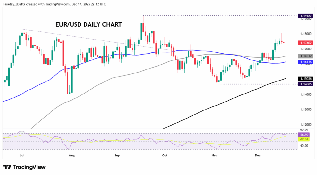 EUR outperformed its peers as markets eye the ECB meeting. A moderately hawkish hold is seen likely with updated staff economic projections supporting this stance, and the euro. Seasonals should also hurt the greenback as we move through December into year-end. Germany’s IFO business sentiment survey was modestly disappointing and hit the lowest level since May.