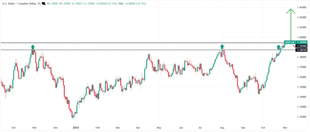 Last week, USDJPY continued its bullish trend, breaking resistance at 152.00 and currently trading around 153.00. Technical analysis suggests that if the breakout holds, USDJPY could target 162.00; conversely, a failure may lead to a drop to 149.10. Upcoming volatility will likely stem from the US election and the Fed’s rate decision.