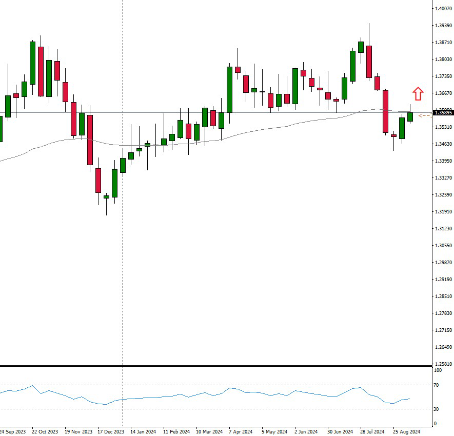 A look at the weekly chart of the USDCAD shows that a break of the 50- moving average could then quickly move the market higher. On the other hand, there could be downside potential in the EUR if consumer prices rise slightly. The data will be published on Tuesday, 17 September at 14:30 CET.