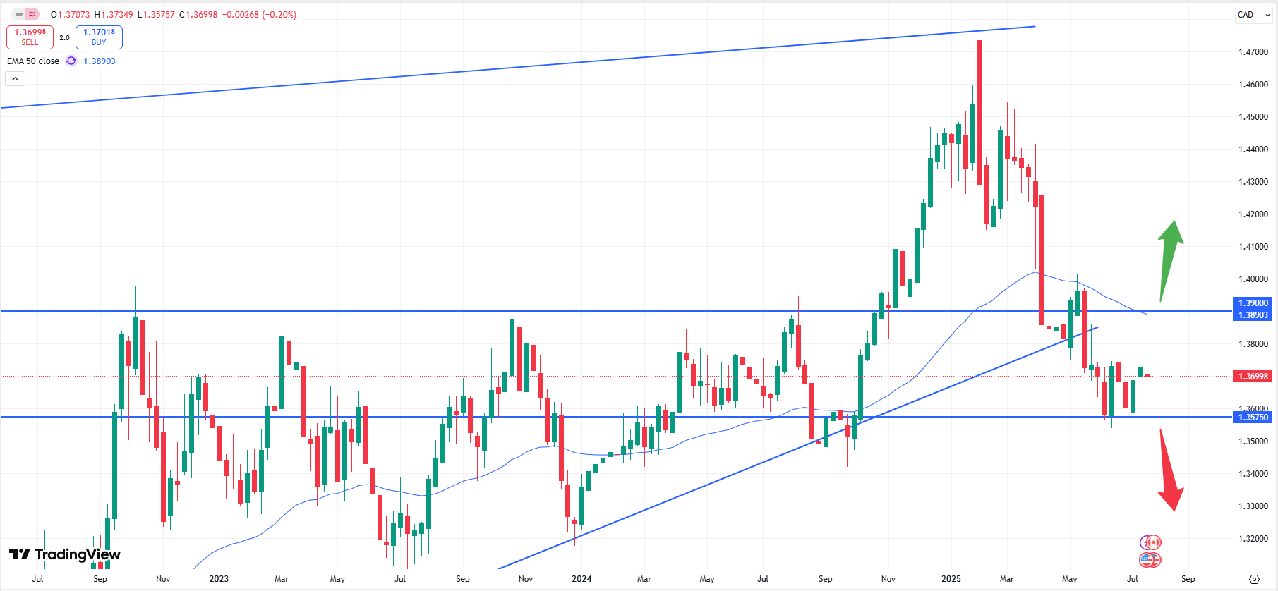 Looking at the weekly chart above, the price of the USDCAD currency pair had fallen below the recent trend to the upside. A break of the 1.3575 zone might cause the market to slide further, in favor of the Loonie, while a push to the upside might reignite the bullish momentum. Worth mentioning that the 50- moving average also sits at the technical resistance zone at 1.3900. Only a rate cut is likely to cause the uptrend to continue, while lower prices might be expected. The data will be released on Wednesday, July 30 at 15:45 CET.