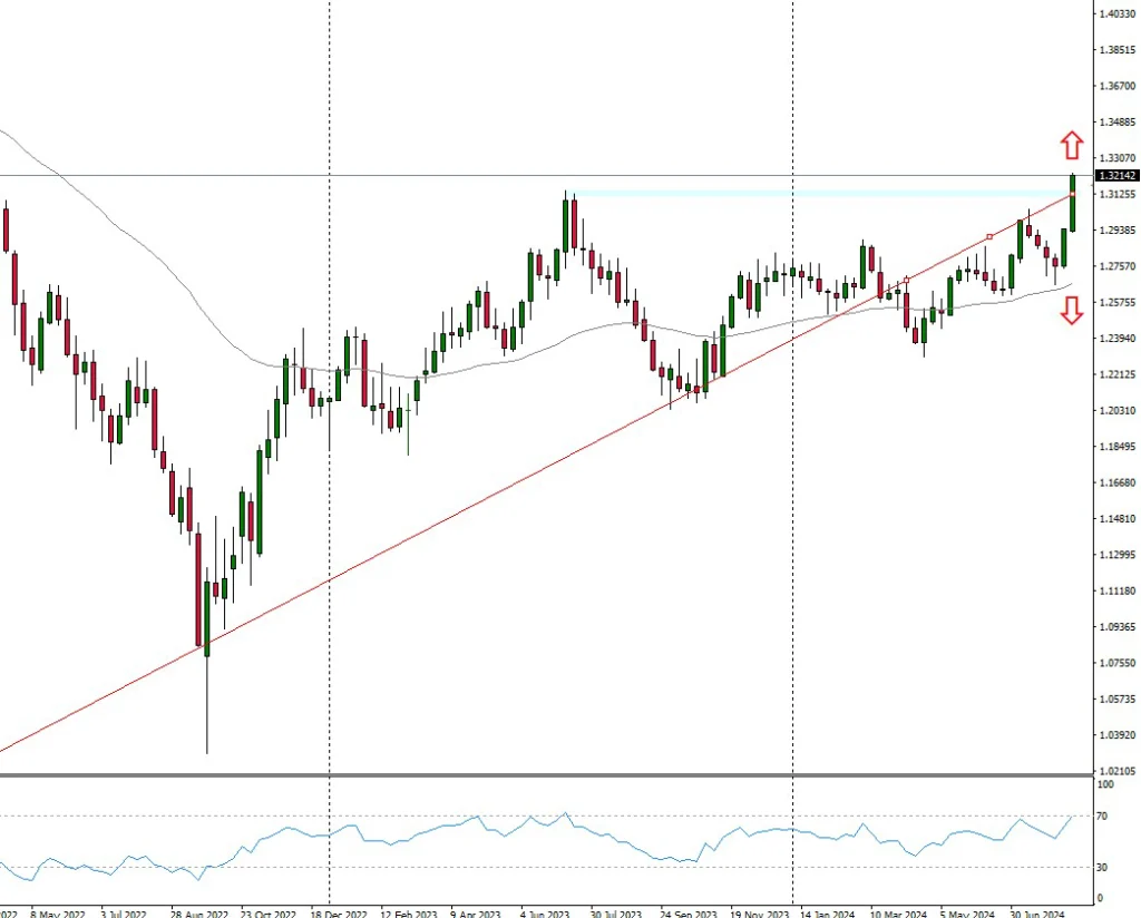 A look at the weekly chart of the GBPUSD shows that the positive trend may continue. Should there be better than expected figures, the Dollar could show renewed potential and thus move the currency pair lower. On the other hand, downward setbacks could also provide new entry points for fresh long positions. The data will be published on Thursday, 29 August at 14:30 CET.