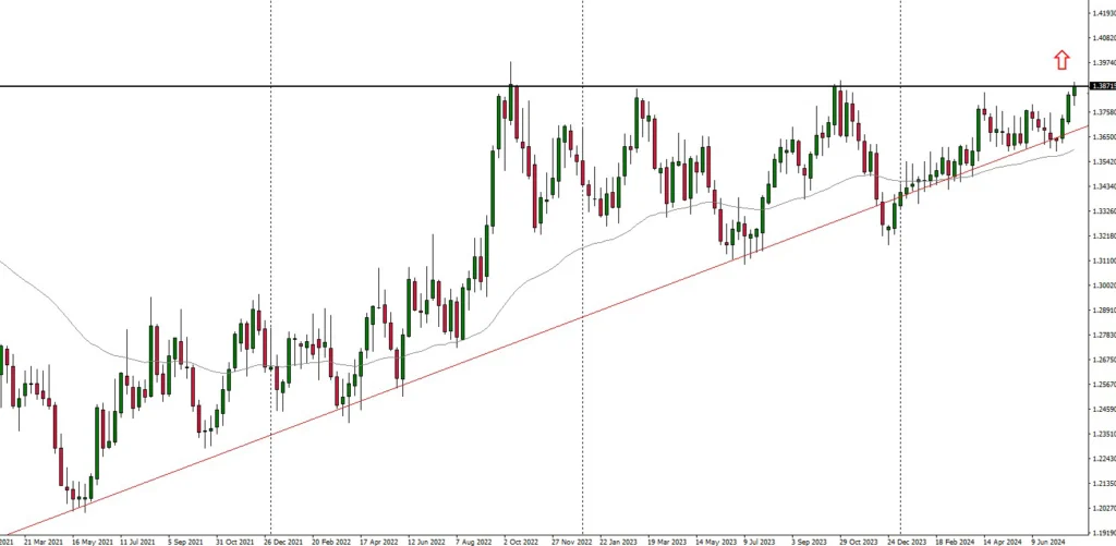 The long-term positive trend of the USDCAD pair impressively shows that the upward movement could continue. A breakout above 1.3875 on the monthly chart could then open up further potential. The unemployment rate will be published on Friday, 09 August at 14:30 CET.