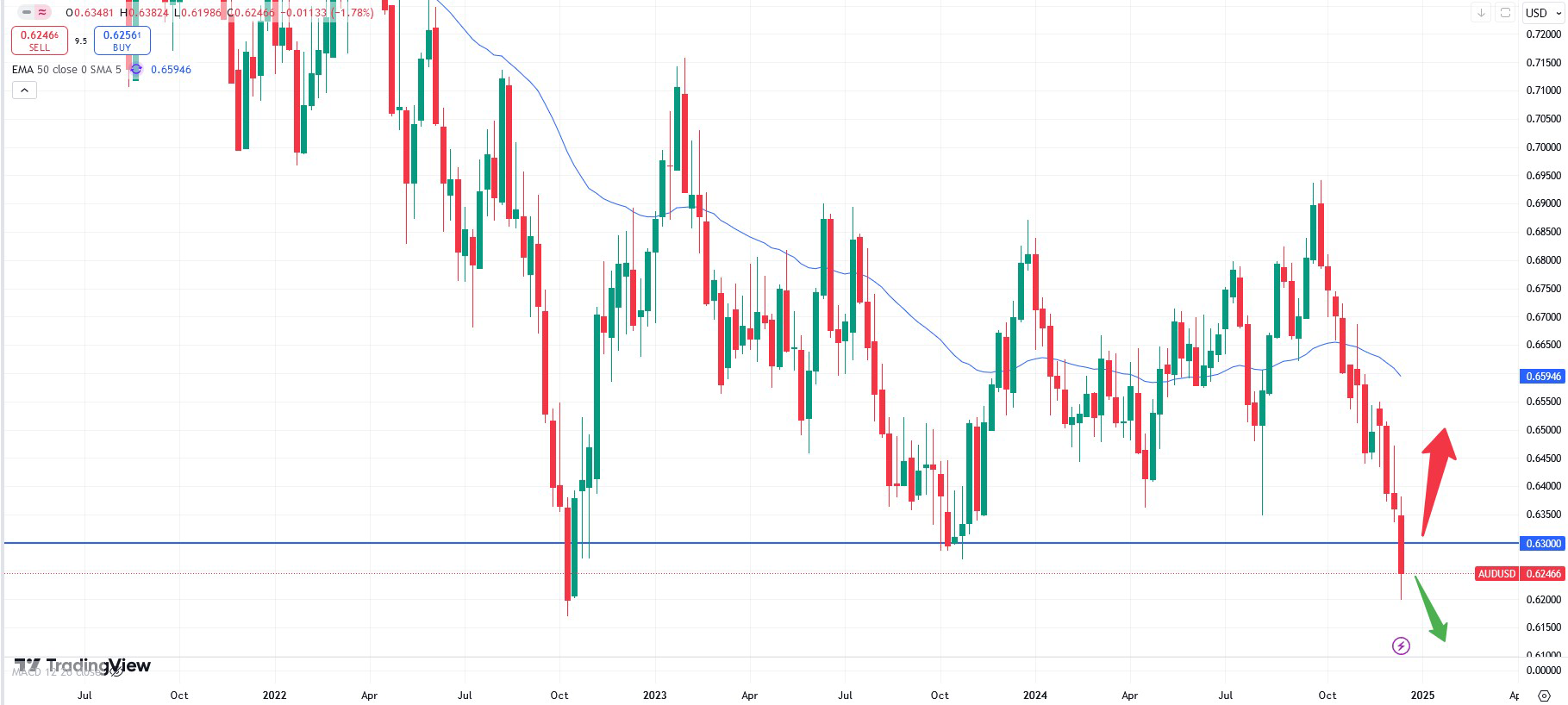 A closer look at the weekly chart of the AUDUSD currency pair reveals that the market has just broken the psychological 0.6300 support zone. Further downside potential might hence occur. Yet the market might just be stretched and could also face profit taking. This could cause the market to run higher in the coming days ahead. The news event will be released on the September 27, 2024 at 14:30 CET.